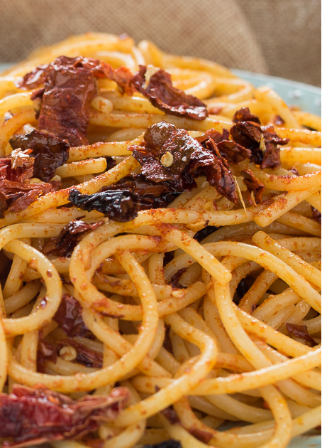 Morbido e croccante, il peperone secco “scrocchia” al primo morso ed è perfetto per un aperitivo, magari con un bicchiere di prosecco.